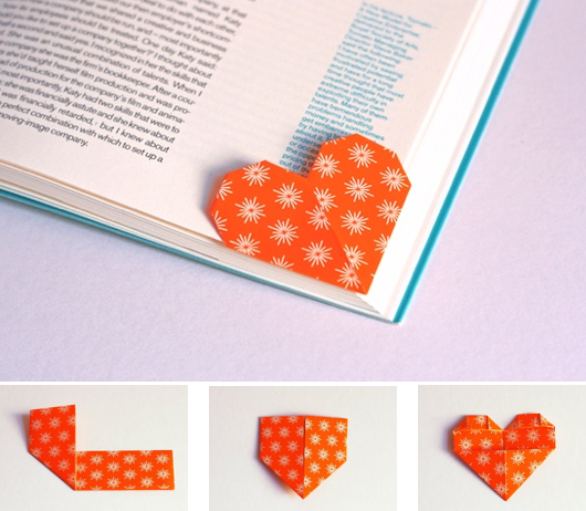Make your mark: Heart-shaped page marker origami, here.